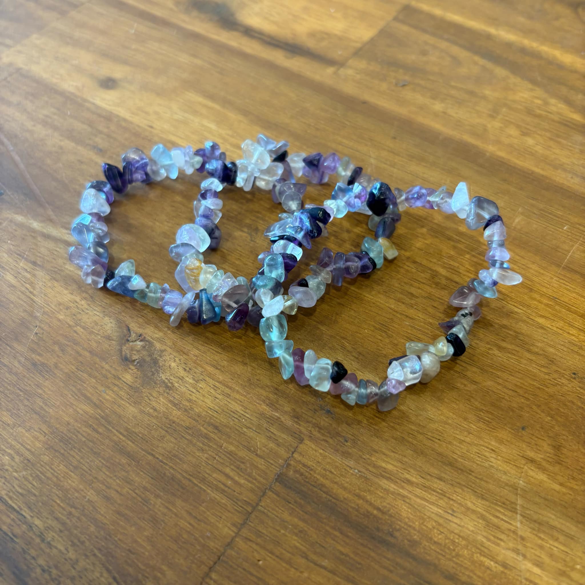 Beautiful Rainbow Fluorite gemstone stretch chip bracelet.